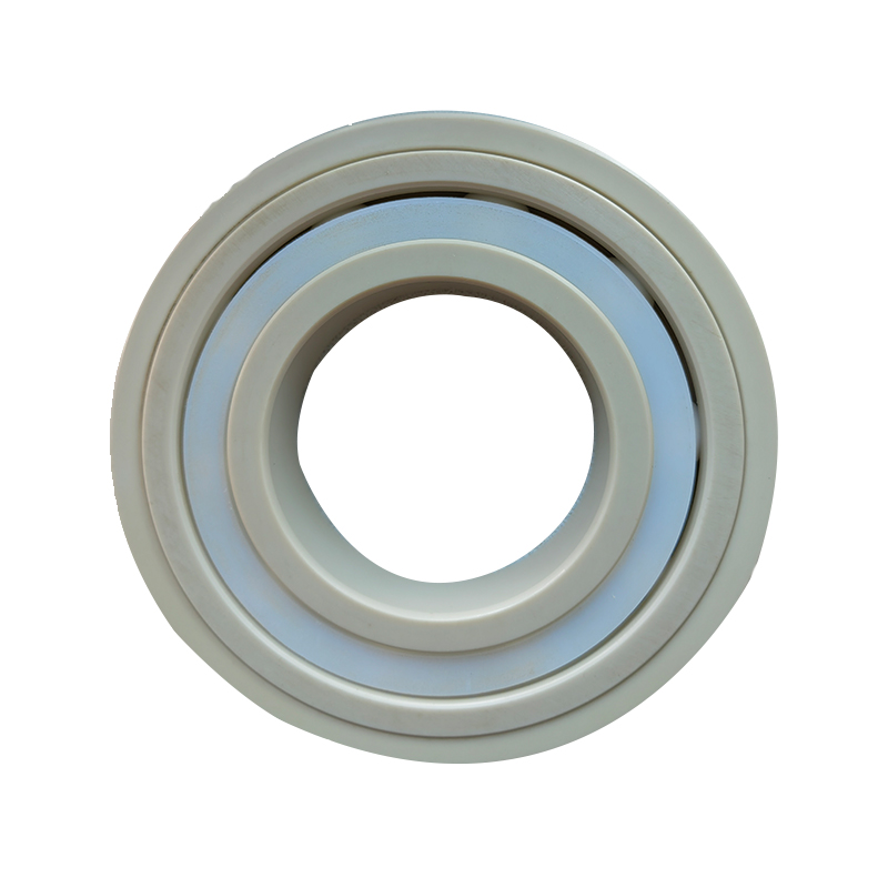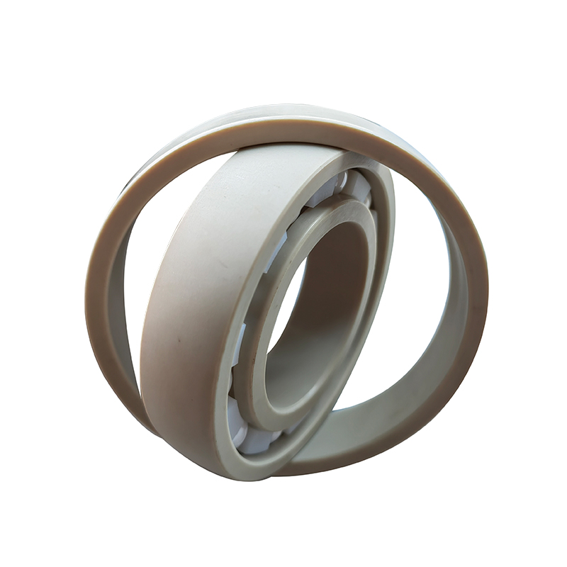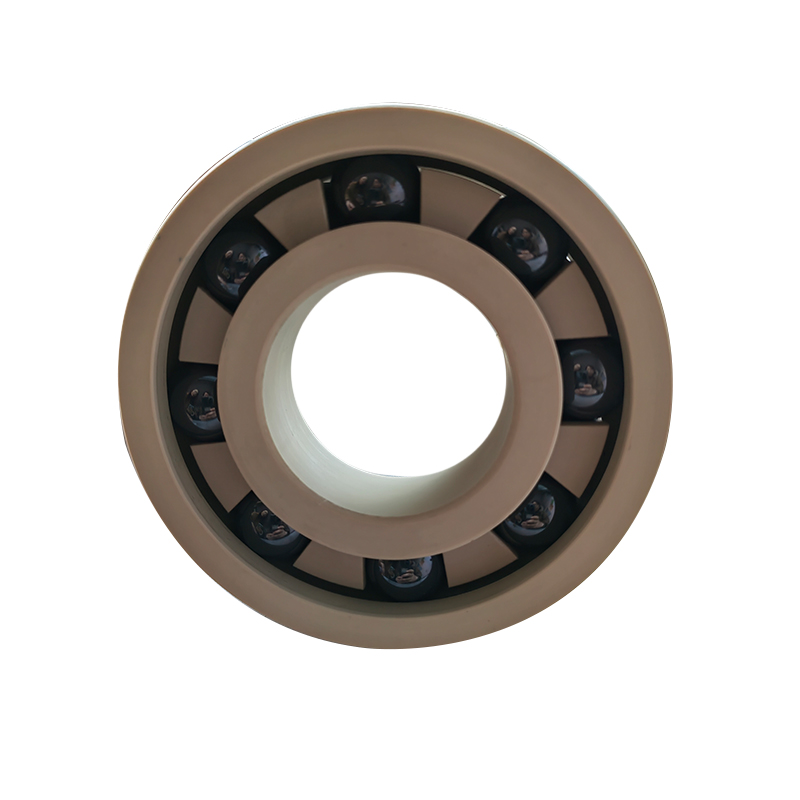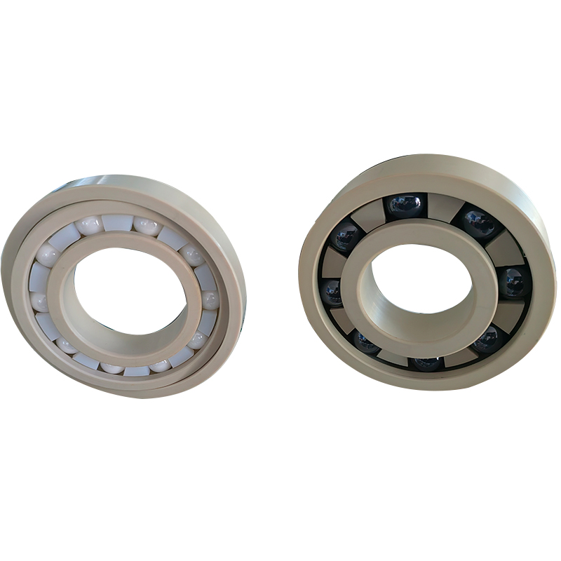 and outer ring materials are PEEK or PI, the cage materials are PTFE, PEEK or P1, and the balls are generally ZrO2 or Si3N4 ceramic balls.