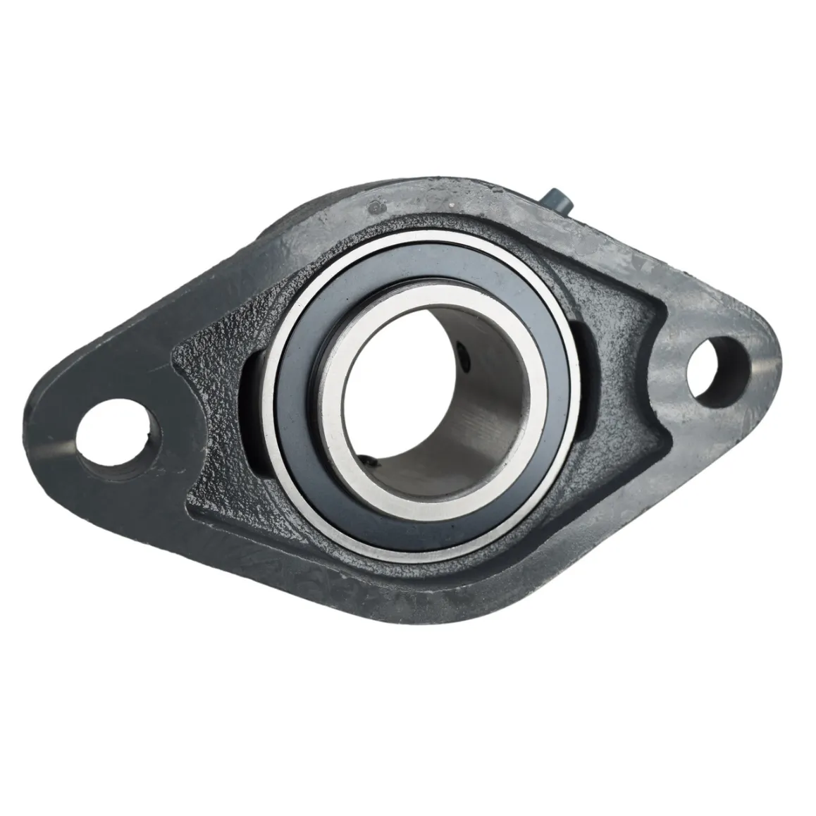 High quality 1-7/8" two bolt flange bearing. The bearing has a wide inner ring with two set screws for attaching to the shaft. Housing is cast iron with a grease zerk for re-lubing the bearing.
